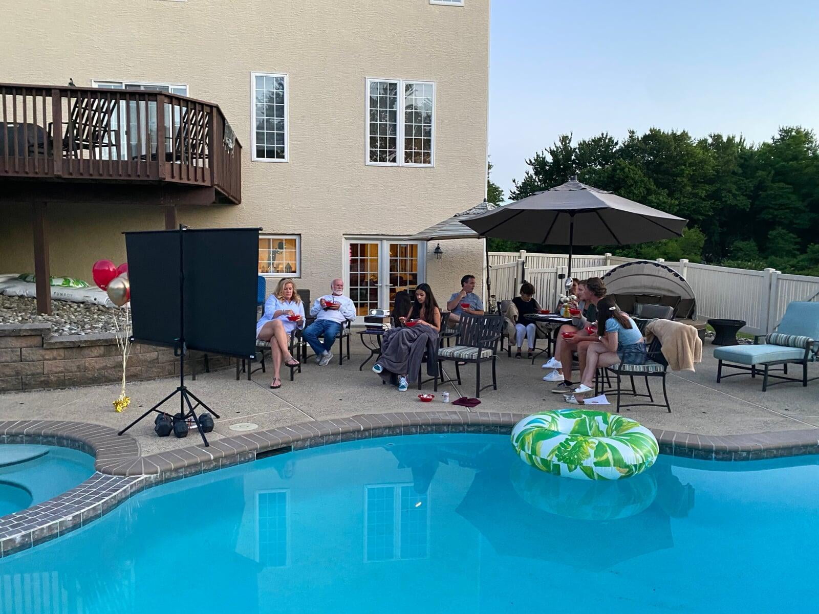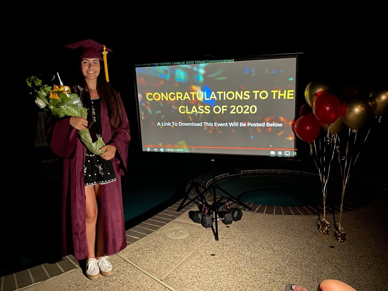 So two weeks later was what would have been Graduation day. Kayla's school compiled all the videos of the senior walks across the stage and all of the speeches which would have occurred as well as some extra fun stuff into an amazing video which they streamed on this day. Kayla wanted to watch it outdoors so we invested in a projector and screen which we didn't already have (to my surprise only $150 on Amazon👍🏻) and had a small gathering pool side to watch her officially graduate. We had expanded our "bubble" by this time and had some close friends over to celebrate. Our "theme" this night was make your own ice cream sundae, so we set up a sundae bar and everyone made a nice treat to take outside for the graduation 🎓