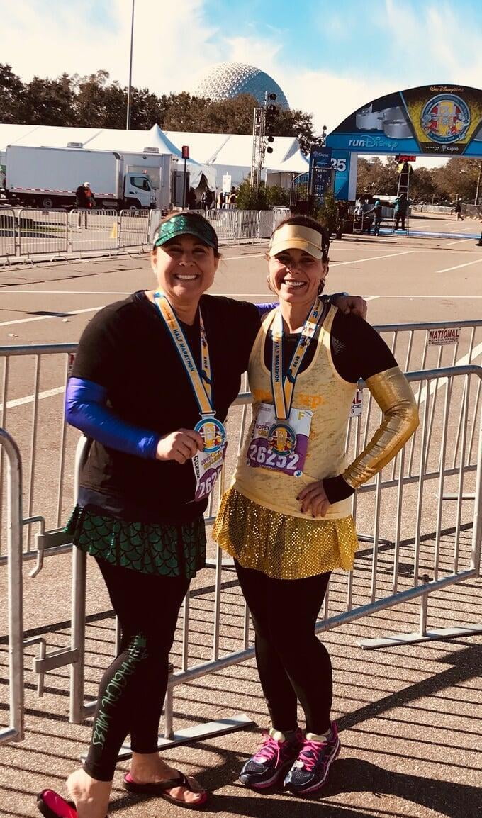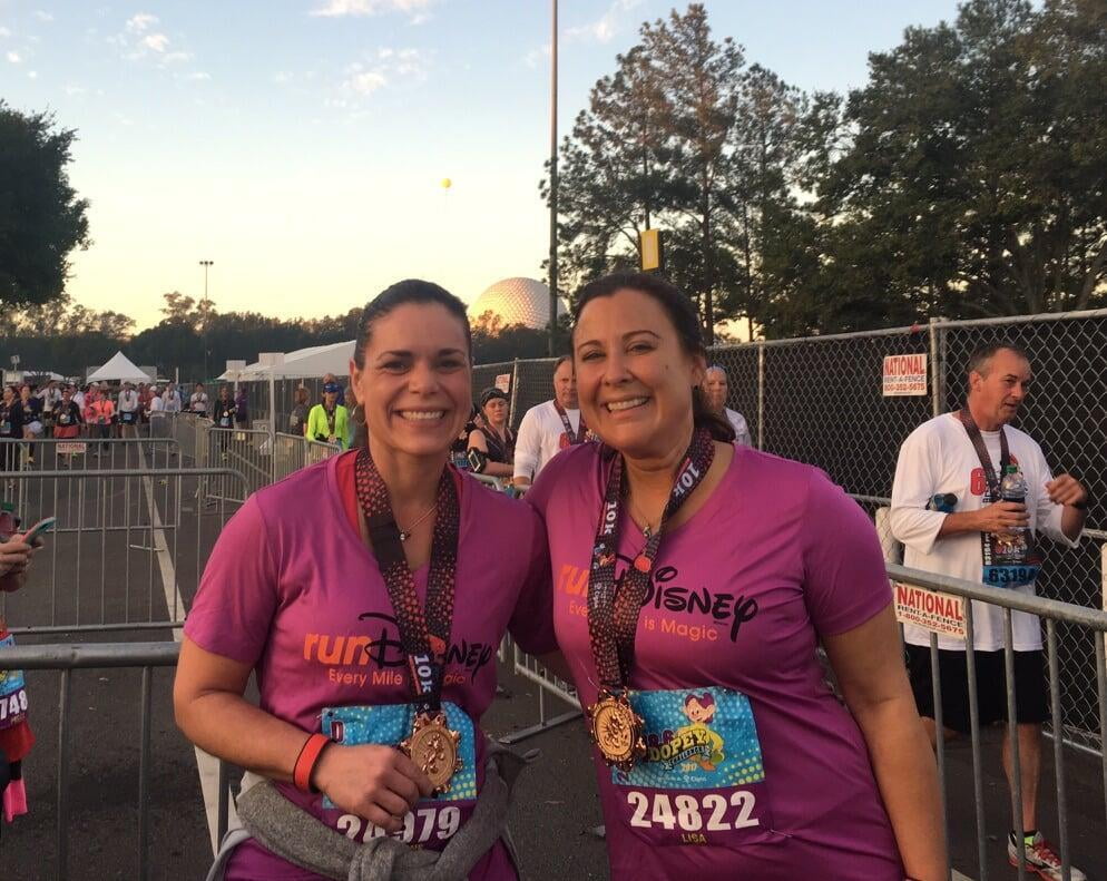 Anyone who saw yesterday's post knows that both Lisa and I are big Disney fans. We are also runners. Well, me not so much anymore, but had been for many years. We had both done many races including some Disney races, so we decided back in 2016 that we would like to sign up for the 2017 Dopey Challenge during marathon weekend at Disney World. This is a 4 day event which includes a 5K, 10K, half marathon and full marathon. Yes...48.6 miles in 4 days...definitely dopey! Lisa is the more experienced marathoner, so she created a training schedule for us, and we attempted to follow it but we were not really training together. As the race date drew near, we realized that we had not been as diligent as we should have been, so neither one of us felt we could complete the full marathon. We decided to still go and run the other 3 races and enjoy a Disney trip with our families. We were disappointed in ourselves, yet realized we had done the best that we could at the time, and we were still going to complete 3 of the 4 races which would be something to be proud of. Fast forward to marathon weekend, and we complete the 5 K and 10K no problem. Then an extremely rare thing happened and Disney cancelled the half marathon due to severe thunderstorms. Defeated again...or were we? At that point we made the decision to train better and register for the 2018 Dopey challenge!! We still had a great trip and we had renewed motivation.