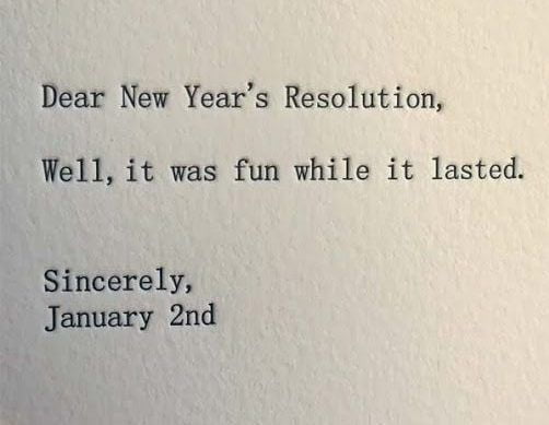 How many of us can relate? I know the idea of making New Year's resolutions is often very exciting. The new year always seems like a fresh start and a chance to set new goals. This can be in the form of changing bad habits, or trying something brand new. Some have no interest in making resolutions, but I think many feel it is a way to try and be accountable. If you write it down or say it out loud to someone else, then it seems, at least at first, like there is no way you will give up. We often start the new year extremely motivated to... fill in the blank with your resolution of choice. The big question is how long will that motivation last, and do these resolutions stick. Or instead, do we fall off the wagon before we barely get started and regret ever making the resolution in the first place. Then it just becomes a failure, but we carry on thinking...there's always next year.