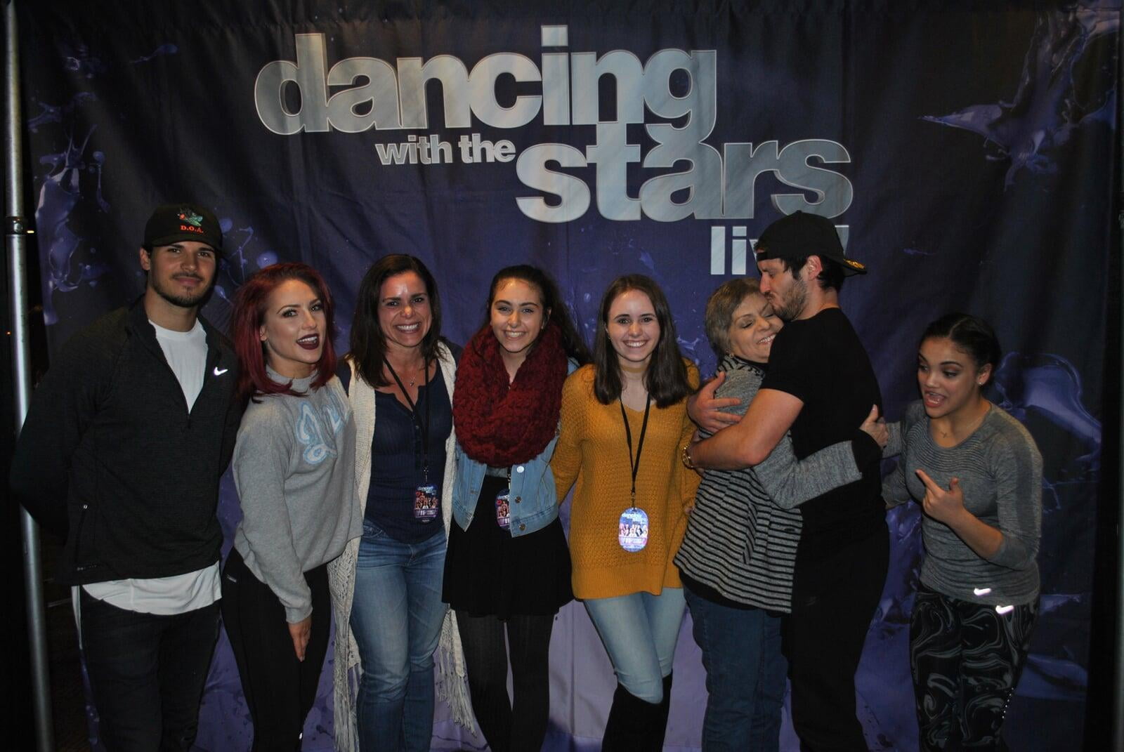 For many years, Monday nights at 8pm the girls in my house which included me, my mom and my two daughters would gather around our biggest and best TV to watch Dancing with the Stars. We began watching the very first season back in 2005 and we were loyal fans for many years. We would pick our favorite couples, vote and never miss it. It was something we really enjoyed doing all together. We were super excited when they started doing live tours, and we went many times over the years. We first went in 2008 and really enjoyed it. In 2009 we went again, got all dressed up, and had great seats on the edge of the dance floor. Both of my girls were taken out to dance with the professionals that night. It was so exciting!! (not the best quality photo below...but there they are at ages 8 and 6 with the pros!)
